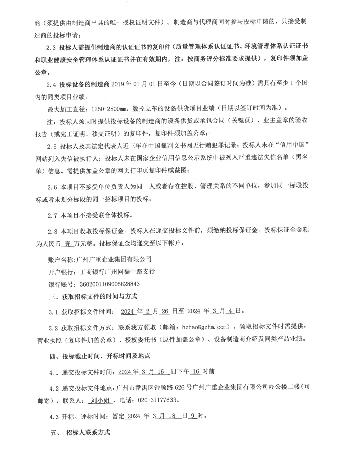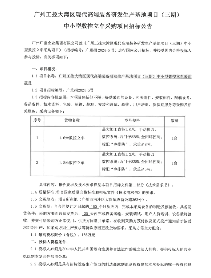广州工控大湾区现代高端装备研发生产基地项目(三期)中小型数控立车采购项目招标公告