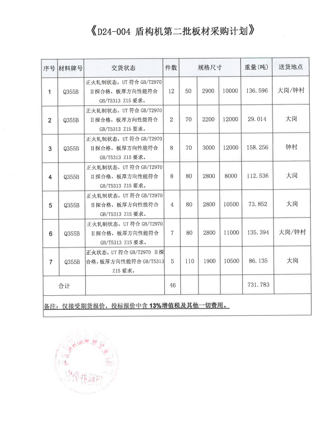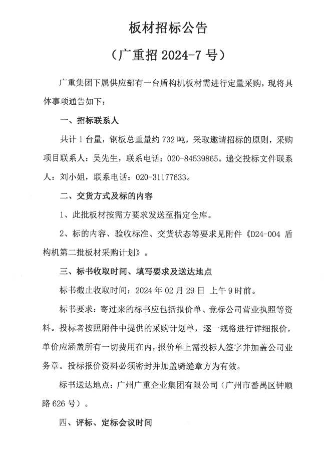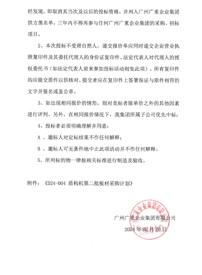开云线上平台·(中国)官方网站集团D24-004盾构机第二批板材采购项目招标公告