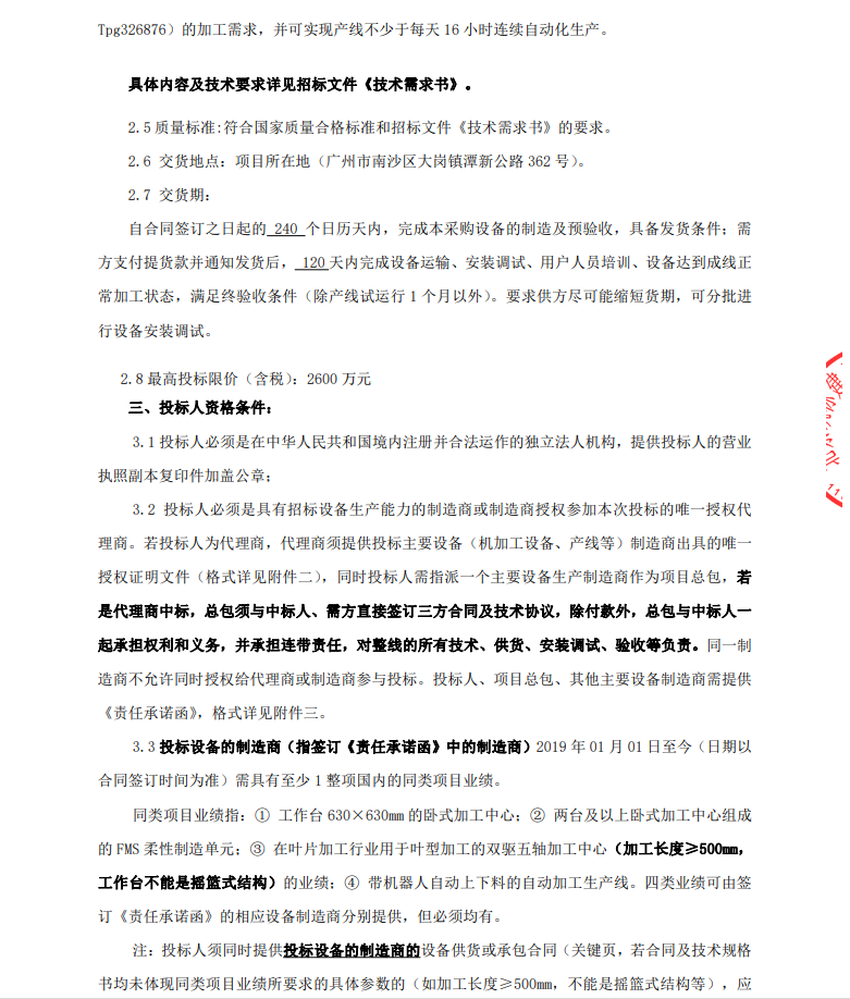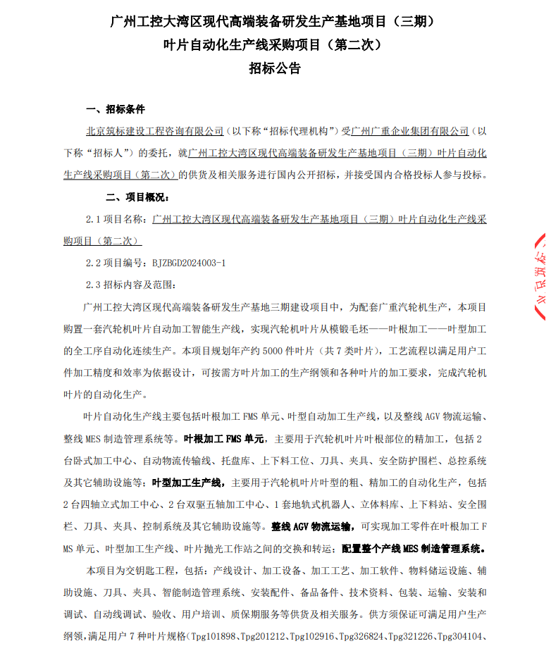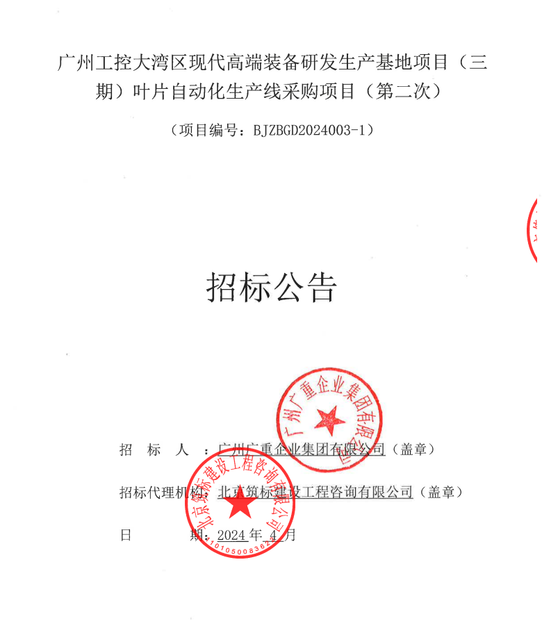 广州工控大湾区现代高端装备研发生产基地项目(三期)叶片自动化生产线采购项目(第二次)