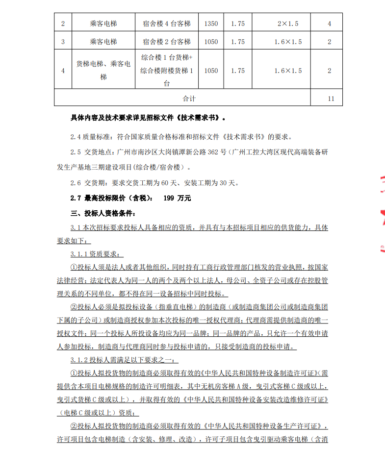 广州工控大湾区现代高端装备研发生产基地项目(三期)电梯采购及相关服务项目招标公告(第二次)