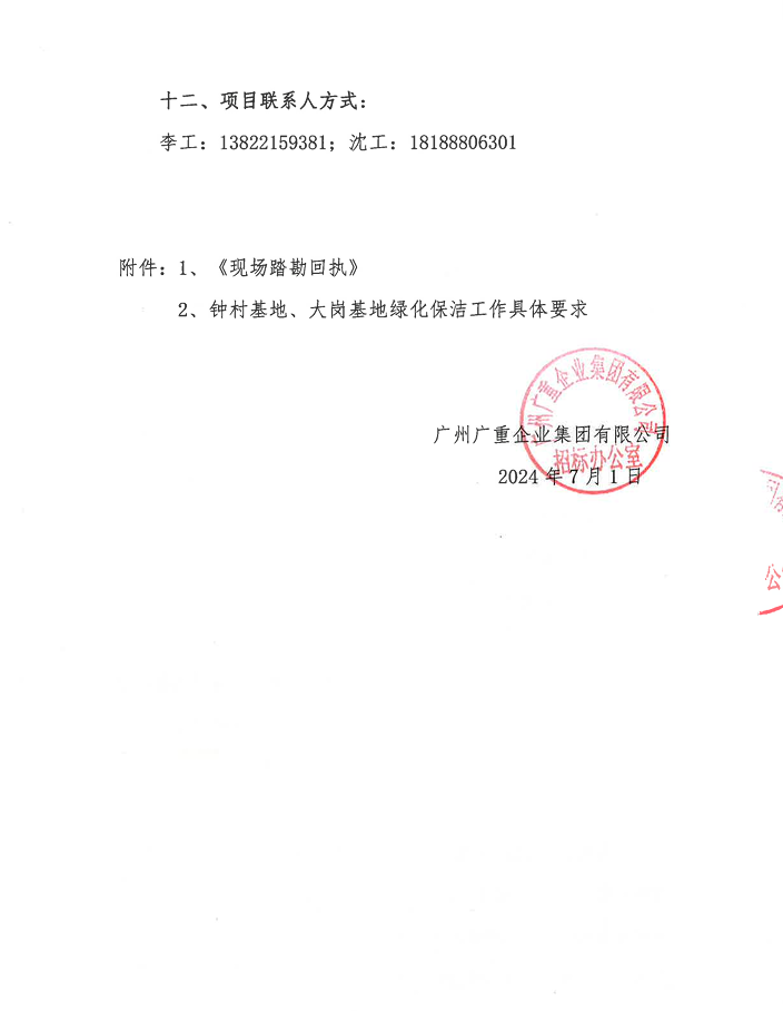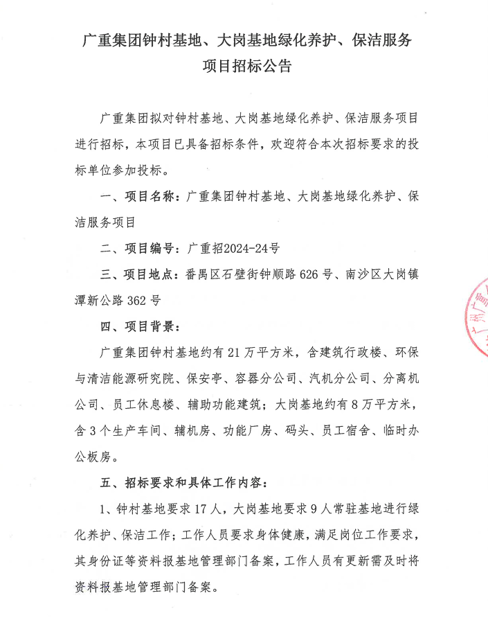 开云线上平台·(中国)官方网站集团钟村基地、大岗基地绿化养护、保洁服务项目招标公告