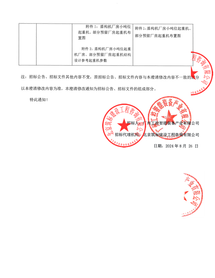 广州工控大湾区现代高端装备研发生产基地项目 (三期) 第三批起重机采购项目(两个盾构机厂房小吨位起重机、 部分预留厂房起重机)澄清函