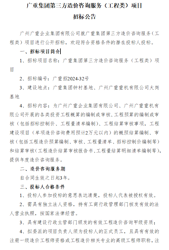 开云线上平台·(中国)官方网站集团第三方造价咨询服务(工程类)项目 招标公告