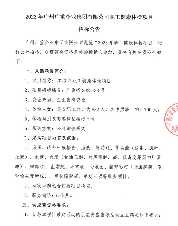 开云线上平台·(中国)官方网站集团2023年度职工健康体检项目招标公告