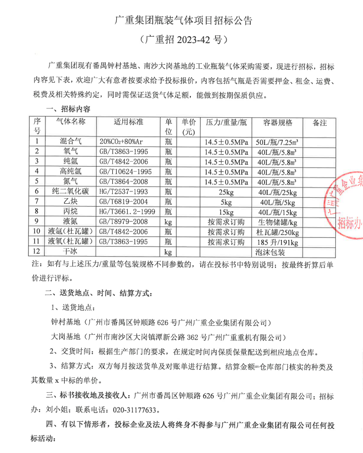 开云线上平台·(中国)官方网站集团瓶装气体采购项目招标公告