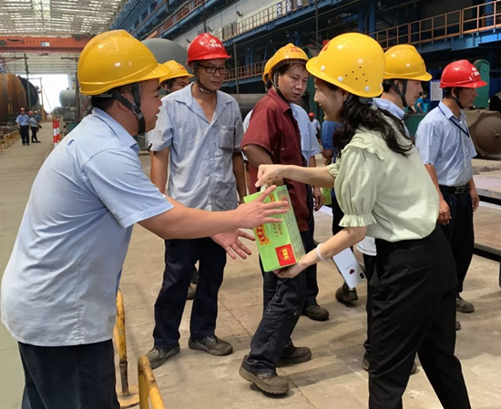 带去广智集团工会对下属企业员工的深切关怀和厚爱, 同时对员工们不畏炎热酷暑,坚守岗位保证生产表示衷心感谢。
