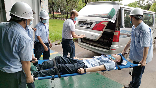 活动当天上午,开云线上平台·(中国)官方网站分厂杨兴科中暑晕倒后,在旁边的李华敏立即通知厂长戴荣星。戴荣星接到事故报告后迅速赶往现场并启动应急救援预案。随后,开云线上平台·(中国)官方网站安全员、警戒联络人员带着担架、毛巾、水、医药箱等,陆续到达现场,迅速将伤员移至过道。发现伤员呼吸浅快、脉搏细速、神志模糊、血压下降后,安全员初步判断为重度中暑症状,马上联系车送至就近医院进行治疗。