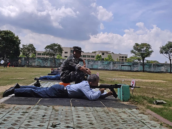 射击训练中,广东省军事综合训练队主要负责人详细介绍了枪支弹药的使用方法,逐一讲解持枪、瞄准、射击等要领,反复强调严守射击纪律。随着打靶口令响起,参训人员迅速反应,上阵、卧倒、握枪、瞄准、扣动扳机、击发子弹,全套动作一气呵成。整个射击过程,秩序井然。